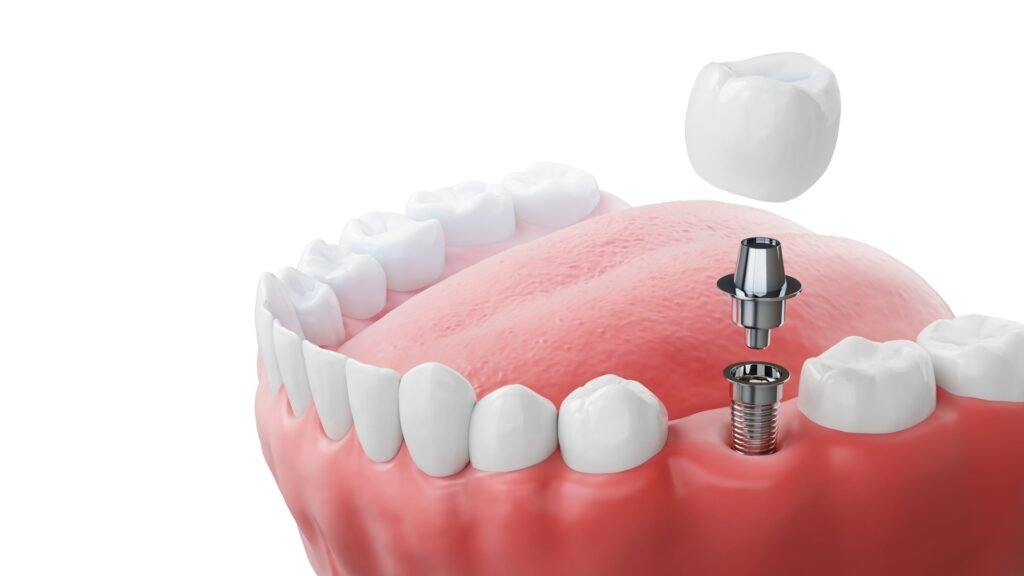 After healing, an abutment is attached to the implant, followed by a custom crown for a natural look and bite.